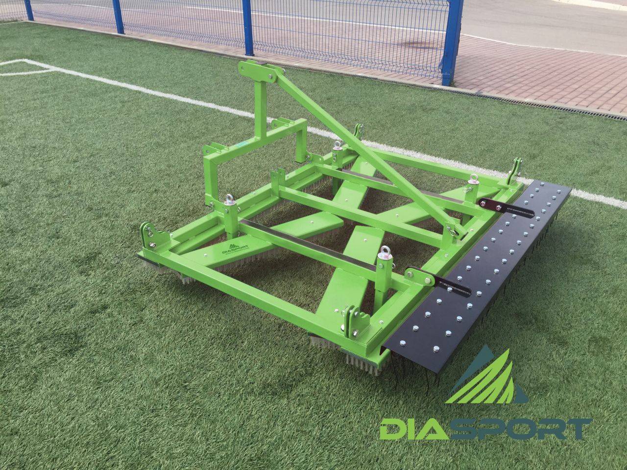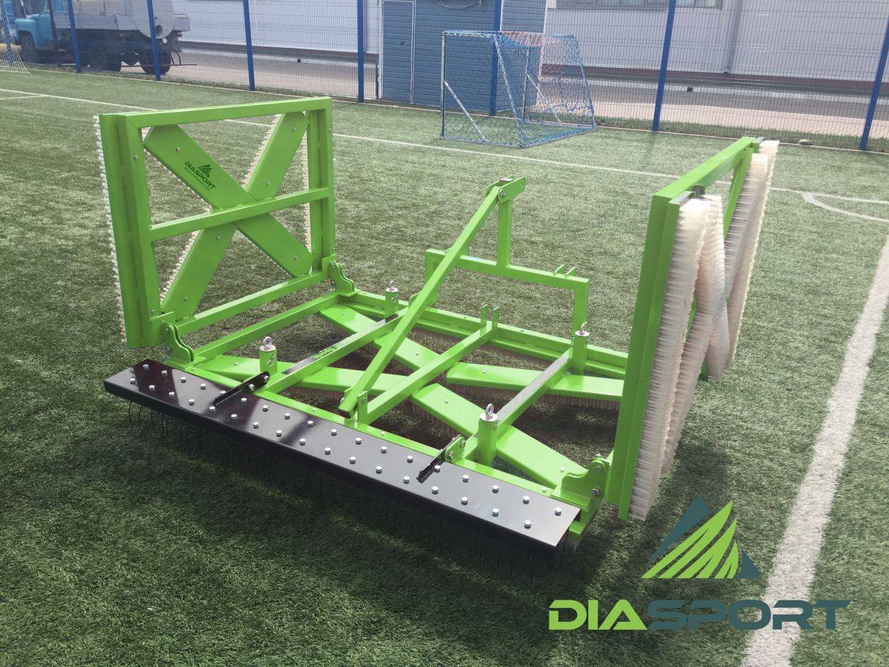 Ворсовая щетка для профессионального сервисного обслуживания полноценных футбольных полей с искусственным и натуральным газоном. Разнонаправленные «углы атаки» щетки обеспечивают максимальный эффект при работе с данной техникой. Вес щетки дает необходимый прижим к покрытию всей плоскостью щетины. Как и вся продукция DiaSport, данная техника надежна и функциональна. Каркас щетки выполнен из толстостенного стального профиля с металлическими швеллерами 3мм. Технологичное порошковое окрашивание сохранит блеск и защиту от коррозии на весь срок службы.