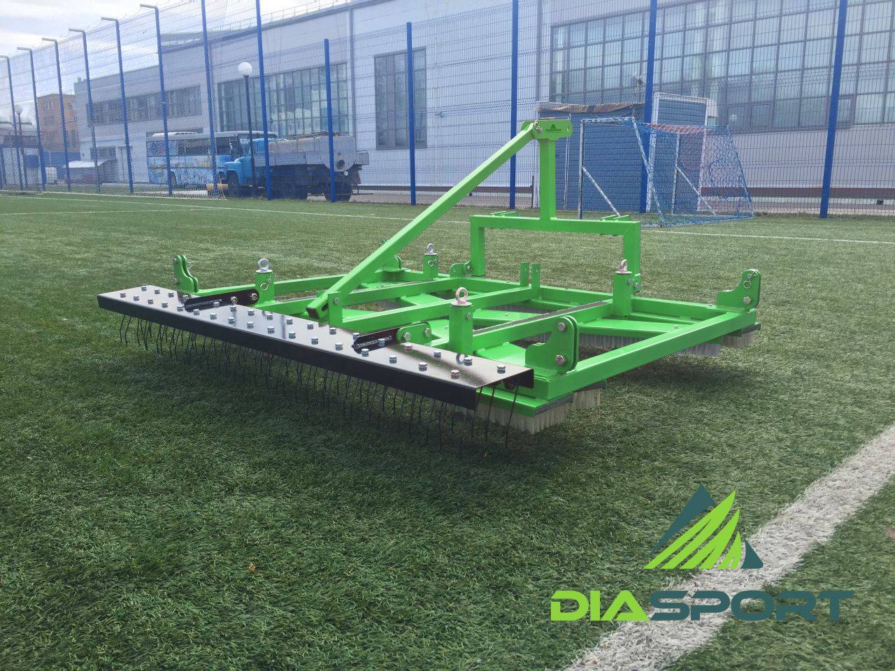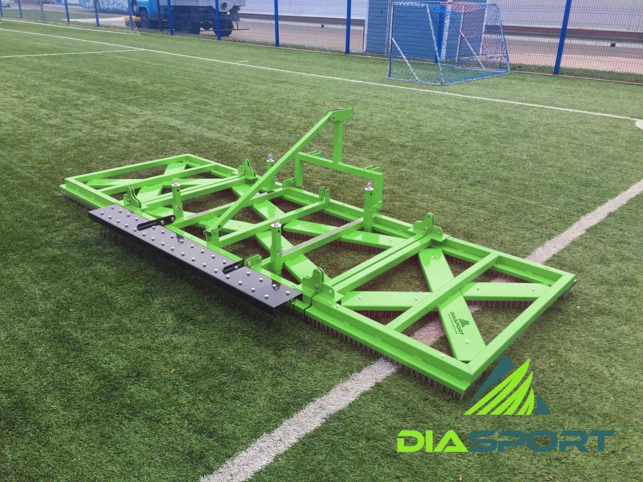 Профессиональная щетка для футбольных полей с натуральным и искусственным газоном, аналог щетки DiaSport AS-1800 с увеличенной рабочей площадью за счет дополнительных секторов. Щетка DiaSport AS-3600 имеет 3х точечное прицепное устройство (Класс 1). Все щетки данной серии в базе снабжаются четырьмя опорными выдвижными ногами и демпферными опорами для защиты напольного покрытия в помещениях для хранения оборудования.